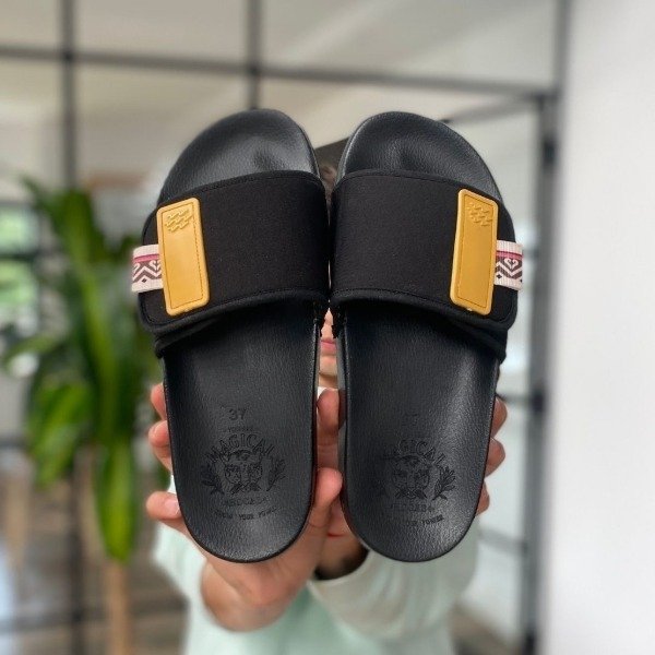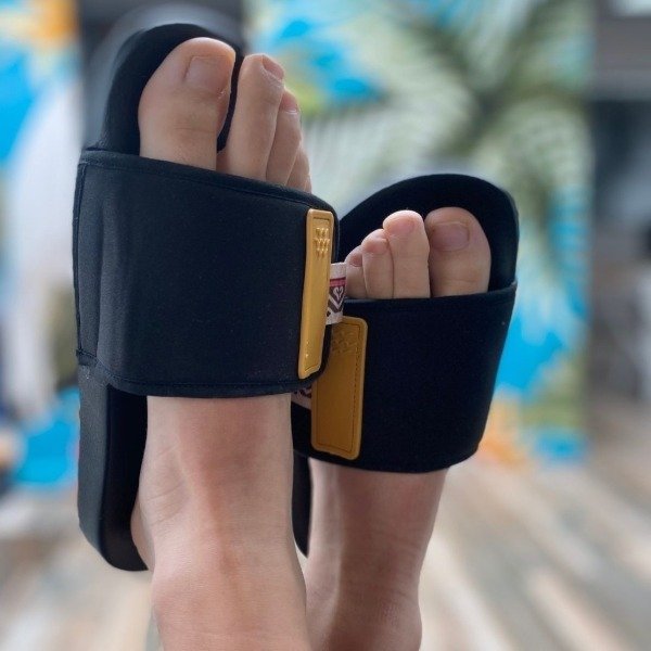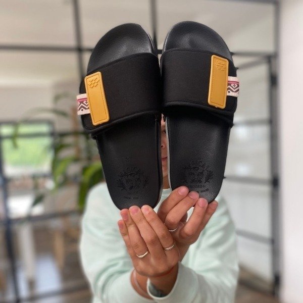 Se caracteriza por su diseño simple y funcional. Tienen una faja ancha que cruza el empeine del pie y se ajusta con un velcro reforzado, están confeccionadas en neoprene estampado combinado con doble frontura. Super cómoda y suaves al tacto, ya que en su interior están forradas con un textil suave como la microfibra dando una sensación agradable en la piel.