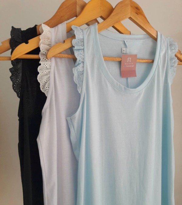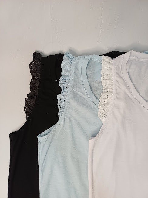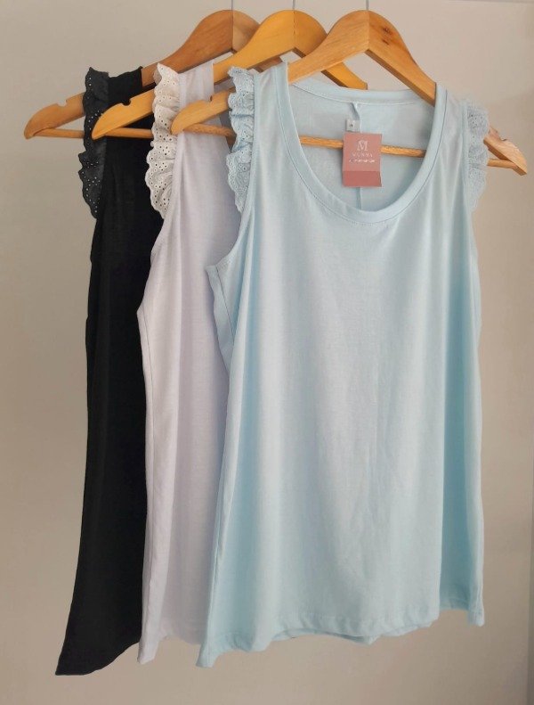 Musculosa algodón con volado de broderie.