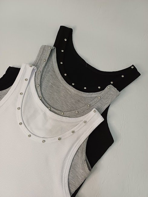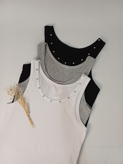 Musculosa de morley. Detalle con piedras en el cuello. Talle S al L