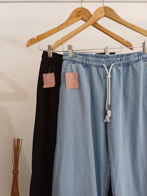 Palazzo Jean camisero, cintura elastizada. Talle S al 4XL
