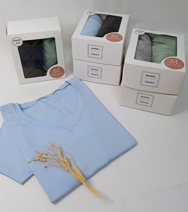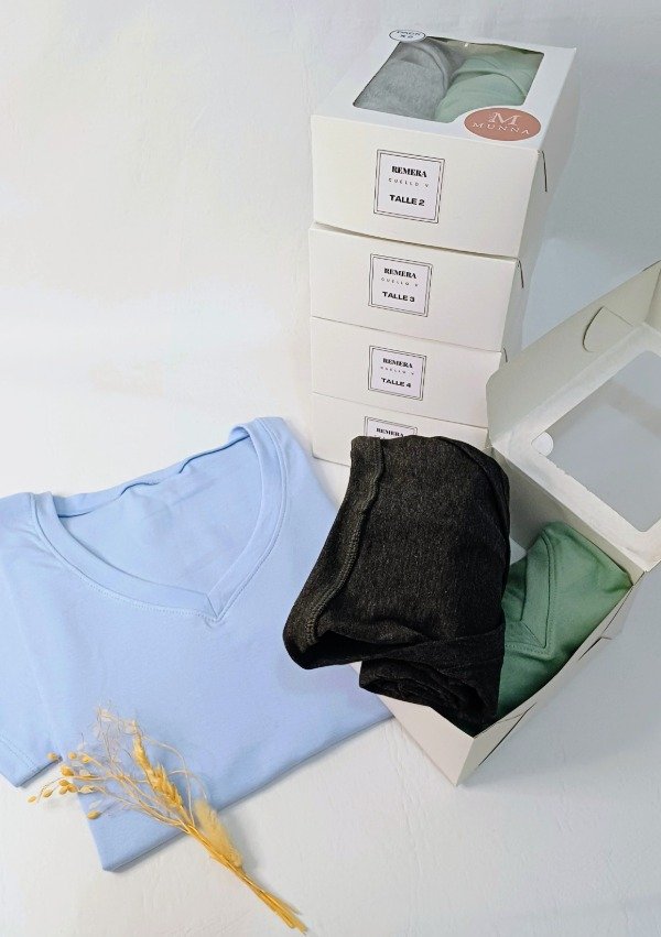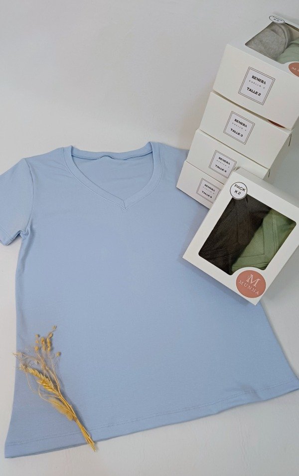 Remeras de viscosa algodón, cuello V. Talle 2 al 5.